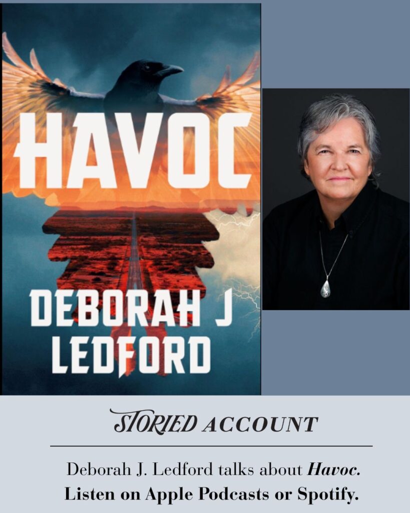 Author Interview – Storied Account Podcast with Jen Jumba: Deborah discusses Havoc, the second novel in her Eva “Lightning Dance” Duran series, offering readers a deeper look into the inspirations behind the story. She talks about her decision to incorporate emerging 3-D technology into the central case and how it collides with the traditions and values of the Taos Pueblo tribe woven throughout the novel.